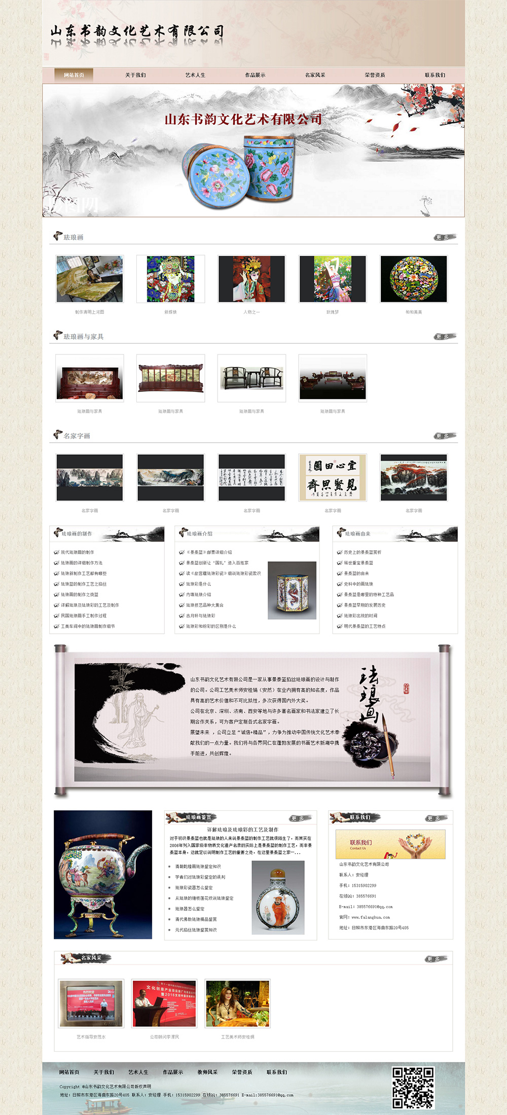 • 山東書韻文化藝術(shù)有限公司是一家從事景泰藍(lán)掐絲琺瑯畫的設(shè)計與制作的公司。公司工藝美術(shù)師安桂娟(安然)在業(yè)內(nèi)擁 有高的知 名度,作品具有高的藝術(shù)價值和不能比較性,多次獲得國 內(nèi)外大獎。 公司在北京、深圳、濟(jì)南、西安等地與許多著 名畫家和書法家建立了長期合作關(guān)系,可為客戶定制各式名家字畫。 展望未來 ,公司立足“誠信+精 品”,力爭為推動中國傳統(tǒng)文化藝術(shù)奉獻(xiàn)我們的一點力量。我們將與各界同仁在蓬勃發(fā)展的書畫藝術(shù)新潮中攜手前進(jìn),共創(chuàng)輝煌。
